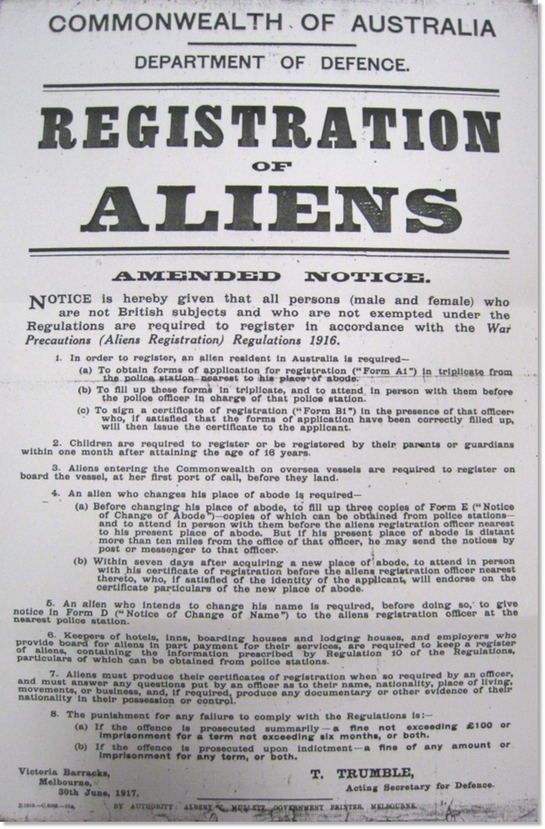 Если немцы требовали "регистрации" евреев, цыган и т.д., то в этой листовке те же требования, правда на добрую четверть века раньше, предъявляли власти британского доминиона к самим немцам, австрийцам и вообще всем германоязычным переселенцам.